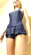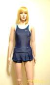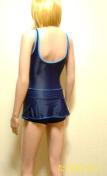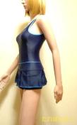 [商品情報] 光沢つるAパイピング×ネイビーのスカート付き競泳水着です。 ブランド:フットマーク サイズ:120 素材:ナイロン パット:なし タグ記名:なし 他:着用の少ない美品です(used)。ホームクリーニング済み。