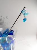 小さなガラスの小花を添えた1本軸のかんざしです。