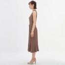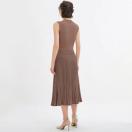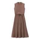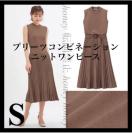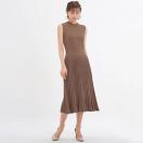 プリーツコンビネーションニットワンピースはプリーツが揺れて動きがあるので華やかで軽やかな印象に?