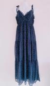 ANAPCHILLE黒白ドットシースルーフリルシフォンロングフレアリボンキャミマキシワンピースアナップチルブラックホワイト
