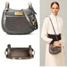 クロコ型押しとスエードの組み合わせがエレガントなトリーバーチのLee Radziwill Small Saddlebag。