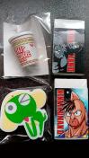 イモト、ケロロ、ズーミン、サタボー、キン肉マン2世×2個、カップラーメンの7点セット。