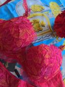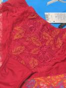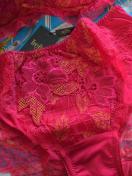 ベルベットを部分的にあしらったサーモカットアップリケとラメ糸のリーフアップリケで魅惑的・幻想的なムードを表現。