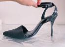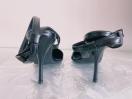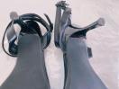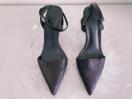 EMODABLACKエモダブラックラメグリッターアンクルストラップポインテッドトゥパンプスサンダル黒靴
