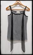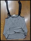 色は白・黒のボーダー、サイズはMサイズ、バスト79から87、身長154から162と記載あります
