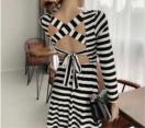 birthdaybashバースデーバッシュブラックホワイトボーダーリボンフレアマキシロングワンピースモノクロバックシャン黒白