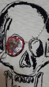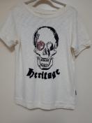 スカルプリントにチェーンとスパンコールのハート型の眼帯が可愛いくてオシャレなTシャツです。
