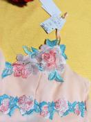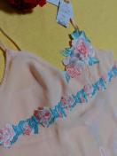 スリップはため息が出るほどゴージャスで精緻なレースと滲む感のある大きなバラのアップリケに目を奪われます。