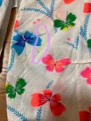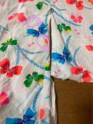 今回の浴衣出品まとめて一度洗濯したところ、たぶん緑色の柄が白の部分に、うっすらですが色移りしたように見えるので画像確認お願いします。