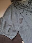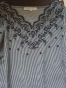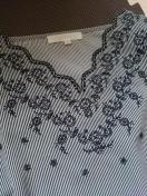 ピンストライプ地に刺繍デザインが可愛いトップスです♪
