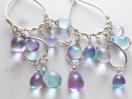 ワイヤーで作ったパーツに、角度によって透明だったり紫や青紫に見える、涼やかな色合いのビーズを留めつけました。