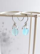 カットのないつやっとしたシーブルーカルセドニーを使ったピアスです。