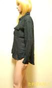 [商品情報] さらA素材が心地よい、ロールUP袖のオーバーシャツです。 ブランド:GU 色:ブラック サイズ:M 平置き⇒肩幅51.5cm、胸元幅54cm、着丈61〜69cm、袖丈51cm、裾幅59p 素材:テンセル/麻 ストレッチ:あり 他:新品タグ付きです。 定価1990