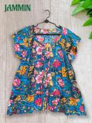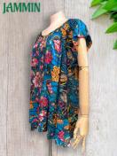 ざっくりしたデザインのアジアンな植物花柄のふんわりトップスです。