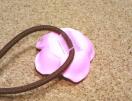 筒ではなく片方が開いていますので、固定パーツを貼り付ける前に通しておけば、既に輪になっているゴムにも簡単にモチーフが付けられます。(わかり易いようにクリアなもので説明しています・画像3)