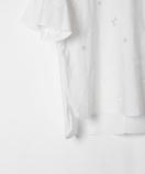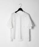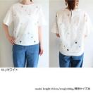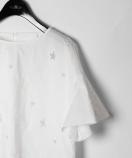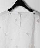 ロマンティックなオリジナルの星モチーフカットワーク刺繍を全面に入れたトップ。シャキッとしたタイプライター生地でお作りした綺麗め素材で大人の女性にも着こなしやすい素材も特徴です。フレアスリーブのフェミニンなディテールもコーディネートを上品にクラスアップしてくれるポイント。後ろが長めのデザインやゆとりを持たせた身幅など品良くラフなフォルムはさりげなく体型をカバーしながらも、インでもアウトでも様になる嬉しい仕様です。
