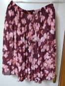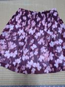 えんじ色や薄い赤やピンク系の花柄スカートです。