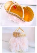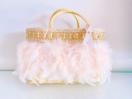FuangFaファンファフェザーカゴバッグ羽ハンドバッグbagリゾート海ベビーピンクイエロー黄色金色ビジューゴールド