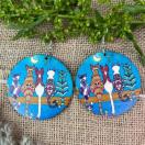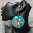 両面にエスニックなカラフル彩色の猫の後ろ姿が並んだ可愛いフックピアスです。