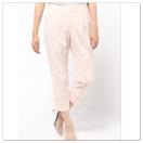 腰回りはゆったりめ、裾に向かって細くなるテーパードシルエットパンツ。