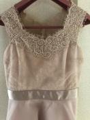 インポートのコードレースを使ったドレスです。バック部分はX字にレースが使われていて、大胆に肌見せになってますが、大人の余裕が感じられます。前の部分はフェミニンな印象ですが、後姿もぬかりなくセクシーな印象を与えてくれます。締切日時