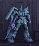 商品の状態は首・肩・腰・股・足首の可動化と、モノアイとスコープの塗装とスミ入れをしました。バックパックのロケットブースターが外れたので着脱可能にしました(腕などを動かすたびに干渉するので)。