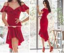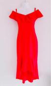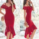 赤フリルタイトフレアマーメイドオフショルダーレッドドレスワンピース