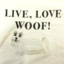 仕様胸に英字と犬のビーズ刺繍がデザインされた薄手のTシャツです。