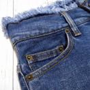 ウエスト部分と裾がカットオフ仕様でフリンジ状になっています。