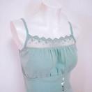 胸元を切り替え、花柄レース付きのキャミソールです。