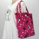 ★猫柄トートバッグ 陽だまり猫のら 和風バッグ 和装袋物 ミニ猫ドット柄 レディース おしゃれ 軽量 綿100% シャンタン 日本製 ピンク BA38