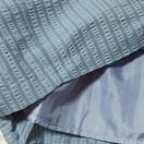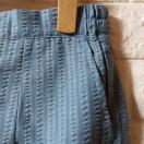 フロント両サイドポケット有り。涼し気なサッカー地のミニスカート。ウエストは後ろ側ゴム。腰回りゆったりめ。