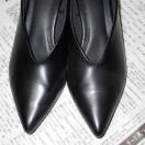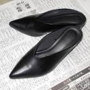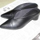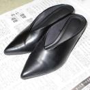 ・Vカットで足がきれいにに見えるポインテッドトゥのミュール。トレンドのラウンドヒールは、太めで安定感もあります。足元にポイントをおく、ロングパンツとのコーディネートがおすすめ。低反発クッションが足にやさしい1点です。