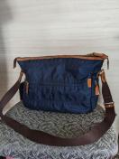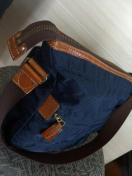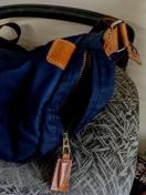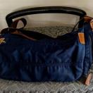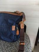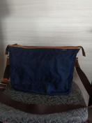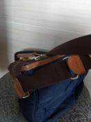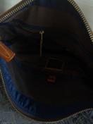 ●しっかりした光沢感ある高級感溢れるナイロン生地と柔らかくしなやかな風合いの本革レザーの組み合わせネイビー&茶革のツートンカラー