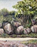 積まれた石垣は、私から見ると自然の中の不自然で人工的な静物になります。なので、描いている時は静物画を描くような気持ちです。