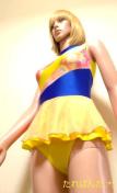 [商品情報] 光沢きらAネオン切替が綺麗なスカート付き大会レオタードです。 ブランド:チャコット サイズ:140(M相当) 素材:ナイロン タグ記名:なし 他:着用の少ない綺麗なお品です(used)。ホルター部分は釦1ケです。 ホームクリーニング済み。