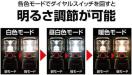 明るさ:白色/1300ルーメン、昼白色/660ルーメン、暖色/600ルーメン