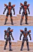 商品の状態は首の長さを若干短くできるようにしたのと(元の長さにすることも可能です)、色を全体的にTV版のくすんだ感じにしたかったので、塗装をしています。剣は赤く塗っていますが、本来の銀にもどすことも可能です(被膜を作って塗装しているので)。2枚目の写真の剣が赤いほうが加工後になります。