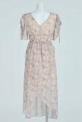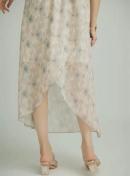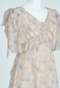 水彩画を落とし込んだ抽象花柄が、アンニュイで儚げなムードを纏う楊柳シフォンドレス。