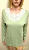 [商品情報] 綺麗な襟元レースのカットソーです。 ブランド:Soul Berry 色:グリーン系 サイズ:LL 平置き⇒肩幅38cm、胸元幅47.5cm、総丈68cm、袖丈60cm、裾幅46.5p 素材:ポリエステル/コットン ストレッチ:あり 他:新品タグ付きです。