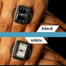 新品 未使用 指輪 時計 四角 フリーサイズ 銀 黒