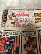 フェイスタオルサイズの『どっとポーチ』がと登場です。トラベルグッズも、着替えも、いろいろ入るから旅行などに大活躍します。時には枕やクッション代わりにも。また、日常でもバッグインバッグとしてカバンの中身をすっきり整理できます。表面にはレトロなディズニーのコミックが描かれ、内側にはワンポイントのイラストが刺繍されています。