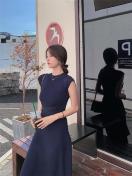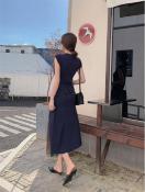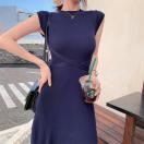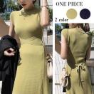 2020夏 新作 ロングセクション 無地 ニット ワンピース レディース ウエスト 気質 ボトミングスカート