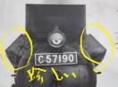 C57190は、昭和21年に門司港機関区に新製配置されてからは米子機関区ー伊勢機関区ー和歌山機関区ー梅小路機関区と働きの場を移し、昭和46年6月1日に廃車解体となりました。この滑稽な姿は、昭和26年に小倉工場にて九州大の葛西教授発案の煙突を二股にして煙を両横に排出する装置を試験的に装着(通称「なまこ」)した貴重な記録写真です。私はこれ以外見たことがありませんし、おそらく写真で出回っているのは片手以下だと思います。なお、黄色のスプレーは、画像の二次使用防止のため、画像上で処理したものですから、実際の現物にはありませんのでご安心ください。締切日時