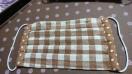 ダブルガーゼ。テクノロート(プラスチィック製の形状記憶の針金)がはいっているので鼻にピッタリします。抗菌ゴムを使っています。立体なので息苦しくなりにくいです