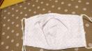 ダブルガーゼ。テクノロート(プラスチィック製の形状記憶の針金)がはいっているので鼻にピッタリします。抗菌ゴムを使っています。立体なので息苦しくなりにくいです