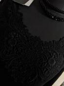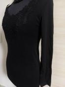 高級感溢れます漆黒のお色の胸元の豪華なまるでお洋服のような豪華コードレース刺繍が華やかに薄手でとにかく暖かく最高なオシャレな今ではお作りのない大変貴重な肌着になります。