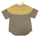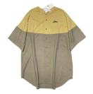 煤けた山吹色&カーキベージュのナチュラルアースカラーの組み合わせで、切り替えデザインも変わっています♪。左胸のロゴプリントはわざと反転して英字が逆になっています♪。moussyらしいボーイッシュなデザインのベースボール風シャツ!ゼヒいかがですか??