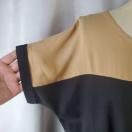 ★ウエスト部分がゴムになってまして、そこから上はゆったり目です(^O^)そいて、ウエスト部分から上は一枚生地で、下は二枚です。