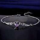 3A ジルコニアパープル ハート型 “天使の翼ブレスレット